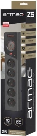 Prepäťová predlžovacia zásuvka ARMAC Z5, 5 zásuviek, kábel 5 m, 10 A, čierna