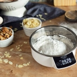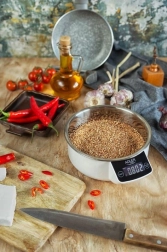 Praktická elektronická kuchynská váha s maximálnou nosnosťou 5 kg a presnosťou 1 g na presné pečenie aj zdravé varenie. Vďaka nerezovej mise sa ľahko čistí, má veľký čitateľný displej, funkciu tara, automatické aj manuálne vypnutie a vie merať objem vody a mlieka.