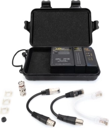 Univerzálny tester kabeláže na rýchlu diagnostiku LAN aj telefónnych liniek. Ľahko overíte správne zapojenie vodičov, odhalíte skraty, prerušenia aj zámenu žíl a vďaka funkcii automatického skenovania aj manuálnemu režimu prispôsobíte test každej situácii. Integrovaný PoE tester (802.3af/at) rozpozná prítomnosť napájania a jeho režim na porte. Kompatibilný s RJ45, RJ12, RJ11 a BNC pre koaxiál aj s káblami od Cat.3 až po Cat.7A.