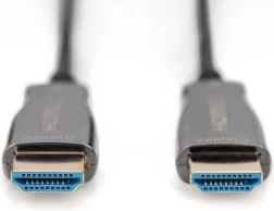 Aktívny hybridný HDMI kábel AOC na bezstratový prenos na väčšie vzdialenosti ponúka UHD 4K/60 Hz, šírku pásma 18 Gb/s a podporu HDMI 2.0b, HDR, HDCP 2.2. Vďaka kombinácii medi a optických vlákien poskytuje minimálne rušenie EMI, nízku hmotnosť a malý polomer ohybu – ideálne pre domáce kino aj konferenčné miestnosti.