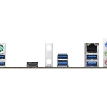 Zadný panel s 8× USB 3.2 Gen1, HDMI pre integrovanú grafiku a 7.1-kanálové audio Realtek ALC1200 s Nahimic pre pohlcujúci herný zážitok.