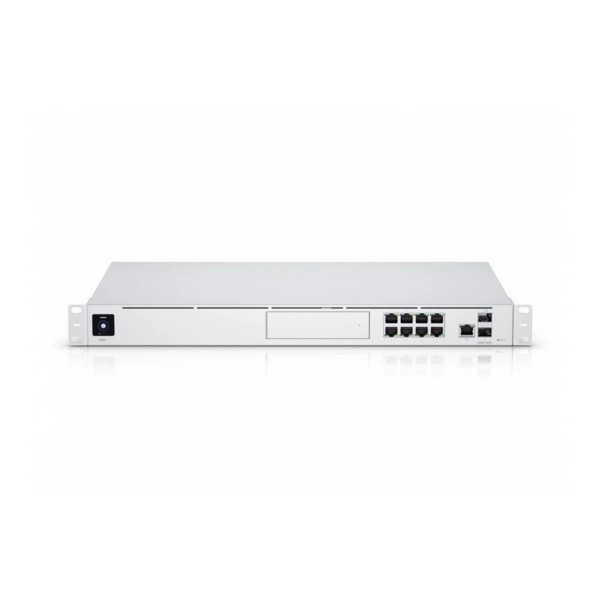 Súčasťou je 8‑portový Gigabit switch s kombináciou RJ45 a 10G SFP+ pre flexibilné topológie. Vďaka UniFi Protect (NVR) s možnosťou osadiť 3,5" HDD premeníte zariadenie na centrálny uzol pre videomonitoring bez nutnosti ďalšieho hardvéru. Bezpečnostnú sadu dopĺňajú IPS/IDS a DPI pre pokročilú inšpekciu prevádzky.