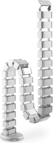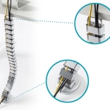Táto elastická káblová maska v tvare „chrbtice“ elegantne skryje a usporiada káble od podlahy k stolovej doske. Vďaka modulárnej konštrukcii možno ľahko skrátiť alebo predĺžiť jej dĺžku podľa výšky stola až do 130 cm. Zaťažená základňa drží špirálu stabilne na podlahe, zatiaľ čo flexibilné články sa plynulo skladajú pri spúšťaní výškovo nastaviteľného stola.