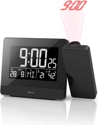 Užite si maximálny komfort pri čítaní času aj uprostred noci. Otočný projektor s možnosťou natočenia o 360° premietne čas na strop alebo stenu presne tam, kam potrebujete. O presný čas sa stará DCF rádiové riadenie s automatickou synchronizáciou, pričom časové pásmo možno v prípade potreby upraviť ručne.