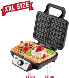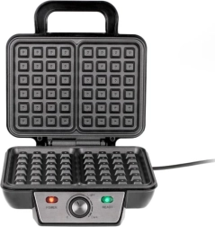 Používanie vaflovača je naozaj intuitívne! Vďaka nepriľnavému povrchu horúcich platní ľahko vyberiete hotovú waflu a následne prístroj vyčistíte. Termostat udržiava optimálnu teplotu na pečenie waflí a svetelné kontrolky nás informujú, kedy je prístroj pripravený na použitie a pečenie. Vďaka funkcii plynulej regulácie teploty môžeme nastaviť čas pečenia od 5 do 15 minút v závislosti od použitých surovín a našich chuťových preferencií. Vaflovač nám umožňuje piecť dve veľké wafle naraz, takže máme istotu, že každá porcia bude teplá a chrumkavá! Prístroj zaberá veľmi málo miesta, takže si ho môžete vziať so sebou aj na dovolenku, a možnosť skladovania vo zvislej polohe ušetrí miesto v kuchynských skrinkách.