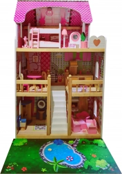 Predstavujeme krásny drevený domček pre bábiky, ktorý je perfektný pre každú detskú zbierku. Tento domček je atraktívnym prírastkom do detskej izby, pretože jeho drevená konštrukcia zaisťuje odolnosť a bezpečnosť pri hre.