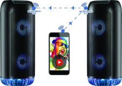 PartyBox 400 je kompaktný prenosný reproduktor, ktorý kombinuje silný zvuk s atraktívnymi svetelnými efektmi. Vďaka Bluetooth 5.0 ho ľahko spárujete so smartfónom, alebo využijete prehrávanie z USB, microSD či cez AUX. Integrovaný FM tuner a vstup pre mikrofón 6,3 mm z neho robia perfektnú voľbu na domáce párty a karaoke.