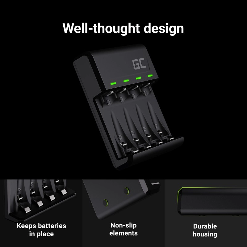 Vďaka štyrom nezávislým kanálom možno nabíjať 1 až 4 články AA alebo AAA súčasne, každý s vlastnou kontrolou a signalizáciou priebehu. Prehľadné LED diódy informujú o stave nabíjania a kondícii každého akumulátora, aby bol proces maximálne bezpečný a efektívny.