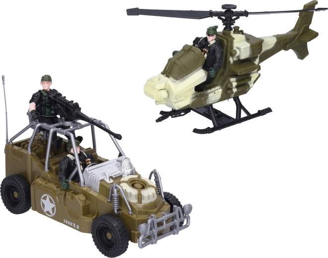 Tento detailne spracovaný vojenský set prináša deťom napínavú akciu na súši aj vo vzduchu. Vďaka vozidlám – autu, vrtuľníku a motorke – môžu malí prieskumníci zmapovať terén, brániť pevnosť a vytvárať vlastné misie. Súčasťou balenia je päť elitných vojakov pripravených na každú operáciu.