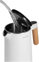 Štýlový dizajn: Kanvica Concept RK3300 Salt-Pepper ozdobí každý domov. Jej efektný vzhľad podčiarkuje matné biele telo na minimalistickej základni, doplnené elegantnou drevenou rukoväťou. S kapacitou 1,5 l ľahko pripravíte až 6 šálok svojho obľúbeného horúceho nápoja.