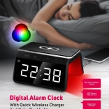 Digitálny budík/časovač s bezdrôtovou nabíjačkou a dizajnovým farebným osvetlením