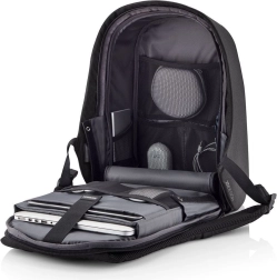Batoh je navrhnutý s tvrdou škrupinou a bezpečnými zipsmi. Na prednej strane je viditeľné logo značky XD Design. Skryté zipsy a materiál odolný proti prerezaniu chránia cennosti, ideálny pre každodenné dochádzanie a cestovanie.
