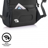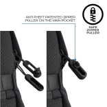 Batoh Bobby Soft v čiernom prevedení ponúka špičkovú ochranu vďaka svojej antikrádnej konštrukcii, ktorá je prístupná iba zo strany pri chrbte. Skryté zipsy a vrecká chránené RFID zaisťujú dodatočnú bezpečnosť vašich osobných vecí.