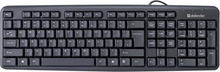Kancelárska klávesnica Defender Element v elegantnej čiernej farbe ponúka plnohodnotné rozloženie, vystuženú odolnú konštrukciu a nastaviteľný sklon pre pohodlné písanie; vďaka plug & play funguje bez ovládačov a plochá konštrukcia šetrí miesto na stole.