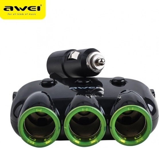 Awei C-3S je kompaktný adaptér do auta, ktorý premení váš 12–24 V zapaľovač na univerzálny napájací hub. Tri zásuvky pre autozapaľovač doplnené dvoma USB portmi umožnia napájať aj nabíjať až päť zariadení súčasne – od navigácie a palubnej kamery po telefón či tablet.