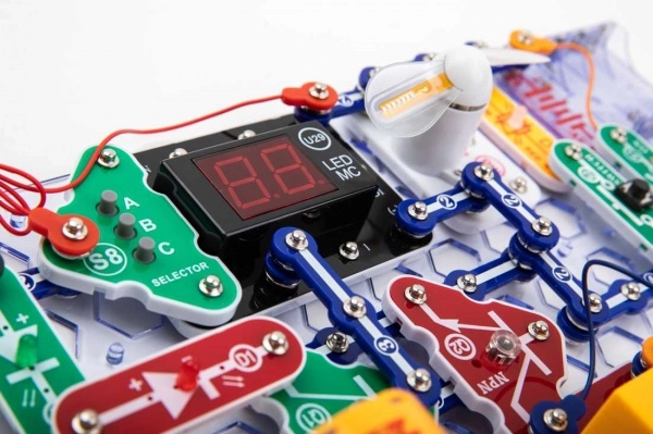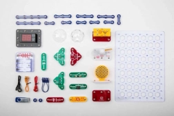 - 1× doska, 35× súčiastok (napr. lietadlo, miniauto, reproduktor, detektor pohybu, motor s prevodovkou), 1× manuál (na stiahnutie online)