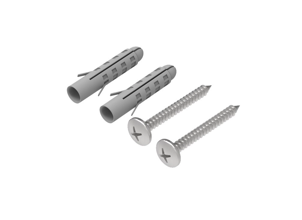 V balení nájdete hmoždinky a skrutky pre bezpečné uchytenie zariadenia na stenu či do rozvádzača, všetko pre čistú a stabilnú inštaláciu.