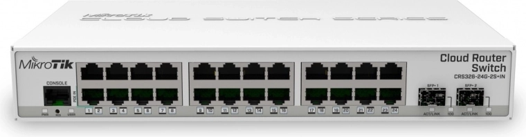 CRS326-24G-2S+IN poskytuje všetky základné funkcie riadeného prepínača, ako je preposielanie medzi portmi, filtrovanie MAC adries, VLAN konfigurácia, zrkadlenie prevádzky, obmedzenie šírky pásma a úprava niektorých MAC a IP hlavičiek. Sloty SFP+ podporujú 1.25G SFP aj 10G SFP+ moduly.