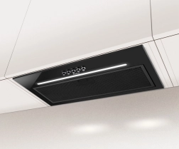 Vstavaný odsávač pár v čiernej farbe dokonale dopĺňa moderné interiéry kuchýň. Jeho decentný vzhľad ľahko zladí s hornými skrinkami.