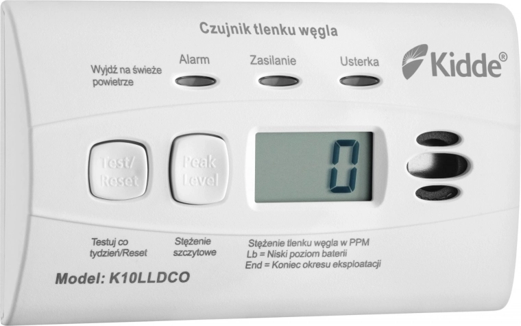Detektor oxidu uhoľnatého Kidde K10LLDCO s vstavaným LCD displejom zobrazuje koncentráciu CO v rozmedzí 0 až 999 PPM. Vďaka napájaniu zo vstavanou batériou je možné nainštalovať detektor na optimálne miesto bez závislosti na sieťovom napätí.