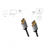Spoľahlivý kábel DisplayPort na prenos obrazu v rozlíšení až 4K pri 60 Hz. Ideálny pre monitory, grafické karty a dokovacie stanice s konektormi DP male – DP male. Kvalitné prevedenie s hliníkovými konektormi a odolným káblom zabezpečí stabilný signál a plynulé zobrazenie.