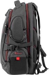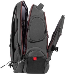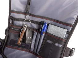 Vnútri nájdete priestrannú hlavnú komoru pre notebook až 17,3” a premyslené vrecká na myš, podložku, powerbank, slúchadlá a ďalšie periférie. Predný panel ponúka praktický organizér na kancelárske drobnosti, kľúče či USB, zatiaľ čo štyri bočné vrecká poslúžia na fľaše a veci, ktoré chcete mať po ruke. Nechýba vystužené ochranné vrecko na okuliare a samostatné bočné vrecko na telefón s priechodom pre káble dnu aj von z batohu.