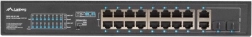 - 18 celkom: 16× Fast Ethernet PoE/PoE+ + 2× Combo Gigabit uplink