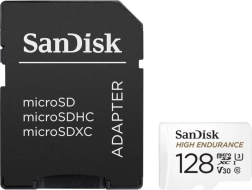 Spoľahlivá microSD karta SanDisk High Endurance s kapacitou 128 GB je navrhnutá na nepretržité používanie v palubných kamerách a domácich monitorovacích systémoch. Ponúka vysokú odolnosť, až 10 000 hodín záznamu, podporu Full HD a 4K videa a rýchlosť čítania až 100 MB/s. Súčasťou je SD adaptér na jednoduché použitie v ďalších zariadeniach.