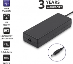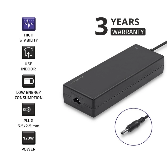 Spoľahlivý stolový napájací adaptér pre široké spektrum zariadení poskytuje stabilný výstup 12 V / 10 A a konektor 5.5 × 2.5 mm. Vďaka moderným ochranám zabezpečuje bezpečné napájanie, vysokú účinnosť a nízku spotrebu energie. Súčasťou balenia je napájací kábel.