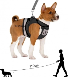 Postroj rozkladá ťah mimo citlivý krk, zaisťuje komfort a lepšiu ovládateľnosť ako bežný obojok. Reflexné prvky zvyšujú viditeľnosť pri podvečerných prechádzkach.