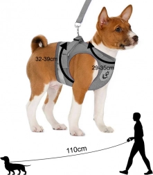 - Veľkosť M – hrudník 32–39 cm, krk 29–35 cm, vodítko 110 cm.