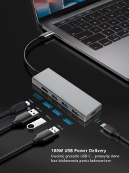 USB-C rozbočovač 7v1 premení váš jediný USB-C port na multifunkčné centrum konektivity: