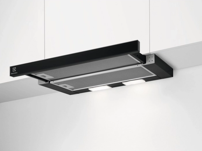 Teleskopický odsávač pár v elegantnej čiernej farbe ponúka moderný dizajn a výkon, ideálny pre akúkoľvek kuchyňu.