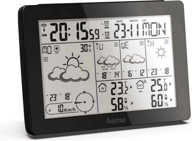 - Dvojdielna sada pozostávajúca z rádiového prijímača dát pre predpoveď počasia (na základe profesionálnych dát) a rádiového vonkajšieho čidla