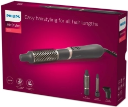 Súčasné vysúšanie a styling – kulmofén Philips Air Styler Essential umožňuje vytvárať krásne, prirodzené účesy a zároveň poskytuje starostlivosť o vlasy. Tri nadstavce sú vhodné na dlhé aj krátke vlasy, takže styling je veľmi jednoduchý.