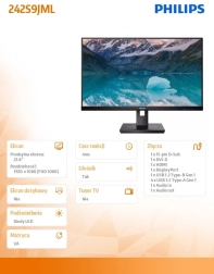 Elegantný 23,8" monitor PHILIPS s panelom VA prináša kontrastný obraz, široké pozorovacie uhly a pohodlnú prácu vďaka ergonomickému pivotu. Ponúka univerzálne pripojenie HDMI, DisplayPort aj DVI, tenké rámiky a moderný dizajn pre domácu kanceláriu aj firemné prostredie.