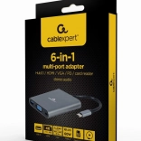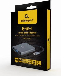 Univerzálny USB‑C hub 6v1 rozšíri váš notebook či tablet o všetko potrebné: HDMI 4K, VGA Full HD, rýchly USB 3.0 (5 Gb/s), 3,5 mm stereo audio, čítačku SD/microSD a priepustné USB‑C Power Delivery 60 W. Kovové telo, spoľahlivé Plug & Play riešenie na cesty aj na stôl.