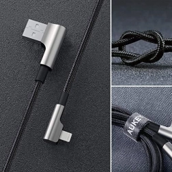AUKEY CB-AL01 Black OEM 90° uhlový nylonový ultra rýchly kábel Quick Charge USB – Lightning Apple 2 m