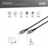 Špičkový kábel HDMI 2.1 ultra high speed na prenos videa až 8K pri 60 Hz a 4K pri 120 Hz s podporou HDR, 3D, ARC a CEC. Pozlátené konektory a trojité tienenie zabezpečujú čistý, stabilný signál bez rušenia, zatiaľ čo hliníkové telo a nylonový oplet garantujú vysokú odolnosť. Dĺžka 1 m, farba čierna.