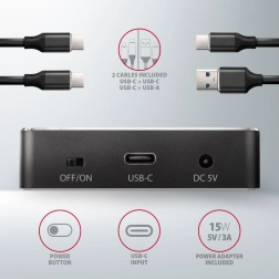 Stolná dokovacia stanica AXAGON ADSA-M2C prináša jednoduché a rýchle pripojenie dvoch NVMe (PCI-Express) M.2 SSD diskov k vášmu počítaču. Pripojenie je realizované cez reverzibilný konektor USB-C s možnosťou použitia štandardného kábla USB-C -> USB-A alebo USB-C -> USB-C, ktoré nájdete v balení.