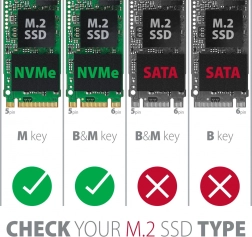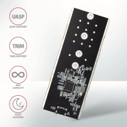 Skrinka je vybavená rebrovaním a teplovodivými podložkami, ktoré efektívne chladia vložený disk SSD M.2 a zvyšujú tak jeho životnosť. Skrinka po stranách chráni SSD, s ochranou proti prehriatiu, ktorá znižuje riziko "Thermal Throttling".