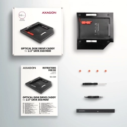 Moderný vnútorný rám AXAGON, ideálny na transformáciu CD/DVD mechaniky na rýchlejší SSD/HDD disk, umožňuje jednoduché upgradovanie vášho notebooku.