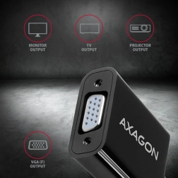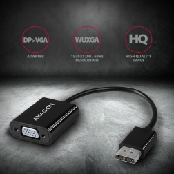Adaptér DisplayPort na VGA od AXAGON umožňuje pripojenie starších VGA monitorov, TV alebo projektorov k počítaču s výstupom DisplayPort bez nutnosti inštalácie softvéru.