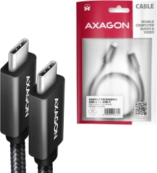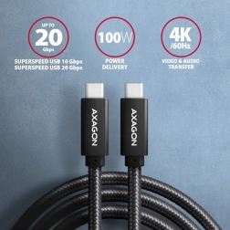Prémiový kábel AXAGON USB‑C ↔ USB‑C na prenos dát aj nabíjanie ponúka až 20 Gb/s, Power Delivery 100 W / 5 A, podporu videa 4K@60 Hz a spoľahlivosť vďaka hliníkovým konektorom, nylonovému opletu, TPE plášťu a integrovanému čipu E‑Marker.