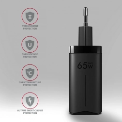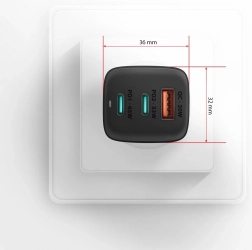 Univerzálna nabíjačka s celkovým výkonom 65W zvládne rýchlo nabíjať telefóny, tablety aj notebooky. Dva obojstranné porty USB‑C a jeden USB‑A poskytujú flexibilné kombinácie nabíjania vrátane inteligentného rozdelenia výkonu. Vďaka čipsetu GaN je telo nabíjačky výrazne menšie, ľahšie a účinnejšie, ideálne na cesty.