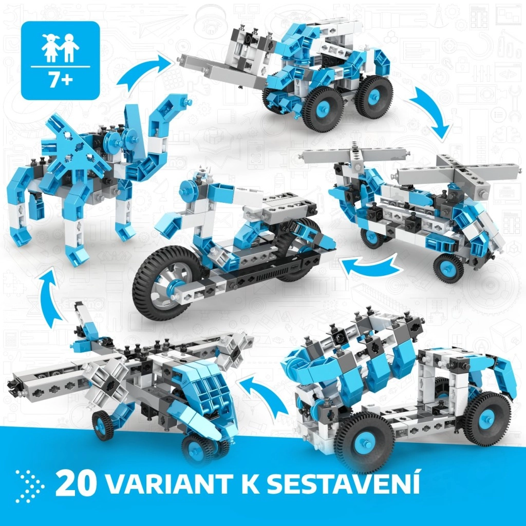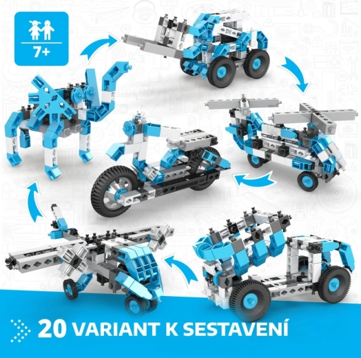 Stavebnica Engino Box 20 modelov prináša deťom od 7 rokov hodiny zábavného objavovania princípov konštrukcie a inžinierstva. Z jedného setu postavíte autá, motorky, lietadlá, vrtuľníky, roboty aj zvieratá – všetko s realistickými detailmi a funkciami pre nápaditú hru. Diely sú pevné, ľahké a navrhnuté pre pohodlné skladanie.