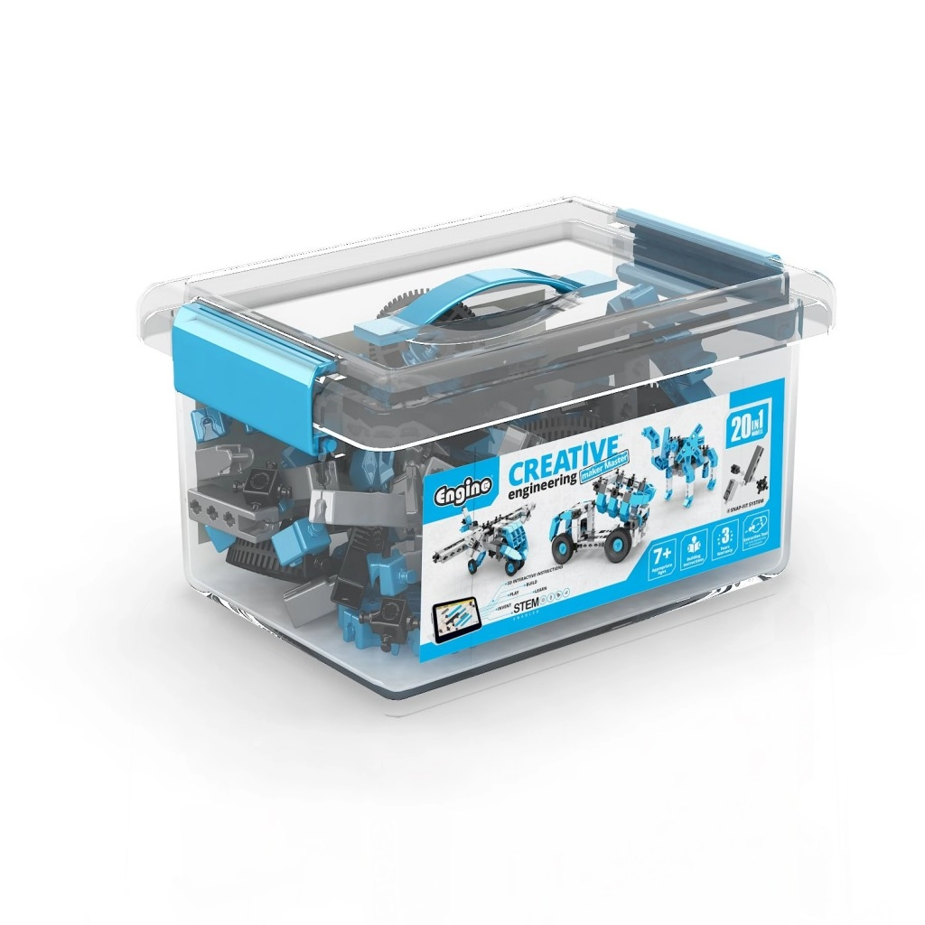 Objavte všestrannú stavebnicu ENGINO s až 20 modelmi v jednom praktickom boxe. Sada pre deti od 7 rokov podporuje kreativitu, STEM učenie a jemnú motoriku. Diely v modrej, bielej, čiernej a sivej farbe sa ľahko spájajú a opakovane prestavujú. Súčasťou je interaktívna aplikácia kidCAD na 3D zobrazenie, otáčanie a úpravy modelov. Uložené v priehľadnom boxe s vekom a rukoväťou pre ľahké prenášanie a poriadok.