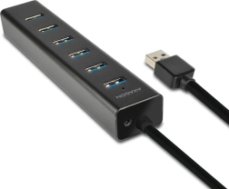 Rozšírte konektivitu svojho počítača elegantným hliníkovým hubom AXAGON so siedmimi USB portami. Podpora USB 3.2 Gen 1 (5 Gb/s) zaistí rýchly prenos dát, zatiaľ čo USB Battery Charging 1.2 umožní nabíjať telefóny, tablety aj powerbanky prúdom až 2 A v ktoromkoľvek porte. Vďaka dostatočným rozstupom portov ľahko pripojíte aj objemnejšie zariadenia.