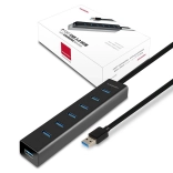 Sedem portov s podporou SuperSpeed zaistí plynulý prenos veľkých súborov a spoľahlivé pripojenie periférií. Spätná kompatibilita s USB 2.0/1.1.