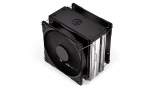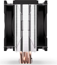 Husto rebrovaný radiátor s kompaktnou základňou a štyrmi medenými teplovodivými trubicami efektívne zbiera a odvádza teplo z procesora aj pri dlhodobej záťaži.
